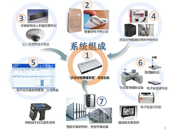 涉案財物管理既關系到辦案質量以及刑事訴訟能否順利進行,也關系到公民、法人和其他組織的合法權益能否得到有效保護。本系統(tǒng)基于物聯(lián)網RFID射頻識別技術,安防技術,數據分析技術和分區(qū)管理理念, 安裝在公安局、檢察院等執(zhí)法部門刑事訴訟涉案財物保管室,從接收、登記、入庫、核查、辦案支持到移轉的完整流程,降低了涉案財物可能存在的損毀或滅失風險,規(guī)范司法行為,支持辦案。該系統(tǒng)設計運用大容量磁盤陣列、數據存儲設備,內置數字監(jiān)控、數字成像、密閉保存、專用設備保管、實時行為軌跡記錄、保管人身份識別等設備,都是為了最大程度地減少辦案人員與涉案財物實體的接觸頻率,有效維護涉案財物的安全。本系統(tǒng)包括移送受理平臺、操作管理平臺,涉案財物智能保管區(qū),涉案財物接收和移送操作區(qū)、以及支持涉案財物智能管理的數字化檔案存儲區(qū)三部分組成。每件刑事訴訟涉案財物的移送過程都被全程監(jiān)控,每件被保管物均得到了精細化管理,對司程序公平、公正給予了有力的支持。